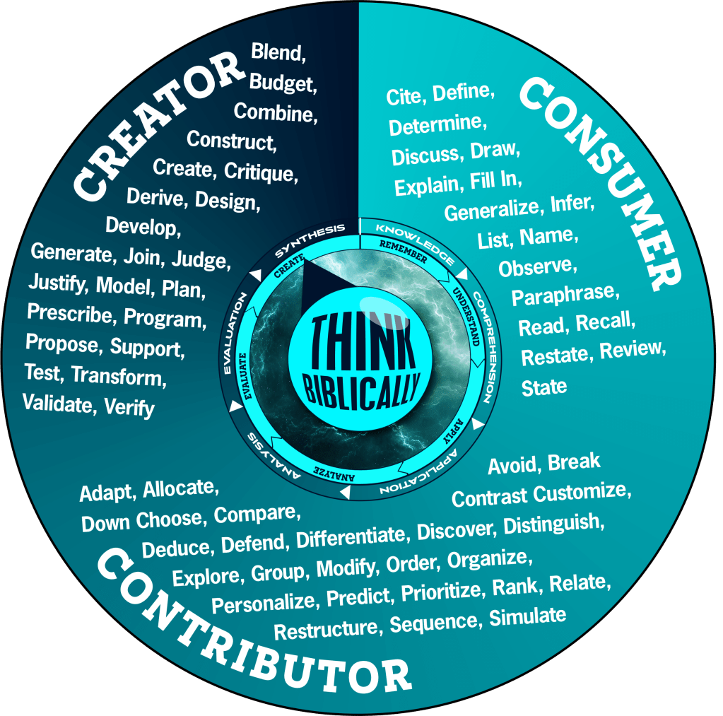 In case you were wondering, all six of these categories do have a place in the life of a disciple. They are developmental stages. But too many stop at application. That may be because the vast majority of purchasable and downloadable resources drive toward remembering and application as the main takeaways from every lesson.